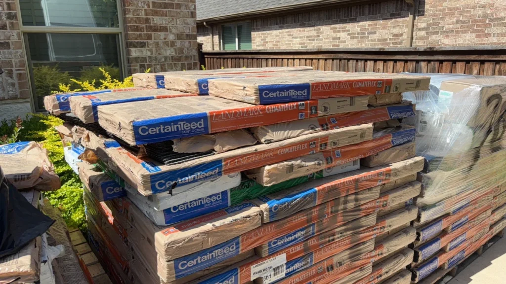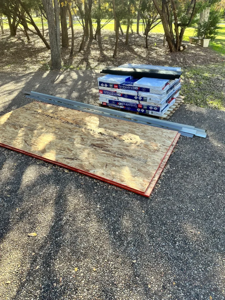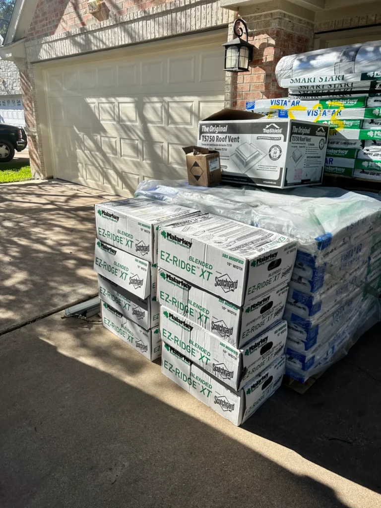 Shingles, sheathing, underlayment, adhesives, decking, and fasteners delivered to job sites on demand.