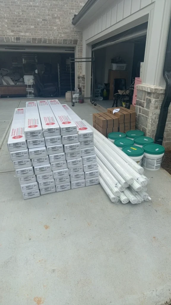 Panels, conduit, breakers, lighting systems, wire spools, and smart tech components are delivered job-ready.